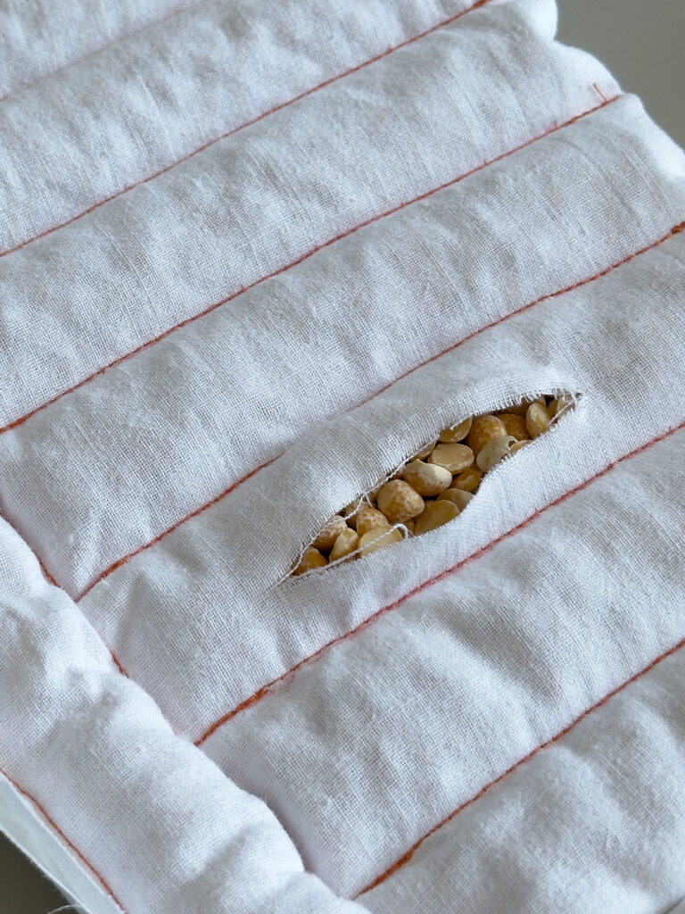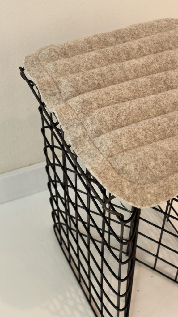 Gino Stool’s Cushion is made of woolen felt and pea grain, exploring alternatives to synthetic upholstery materials.